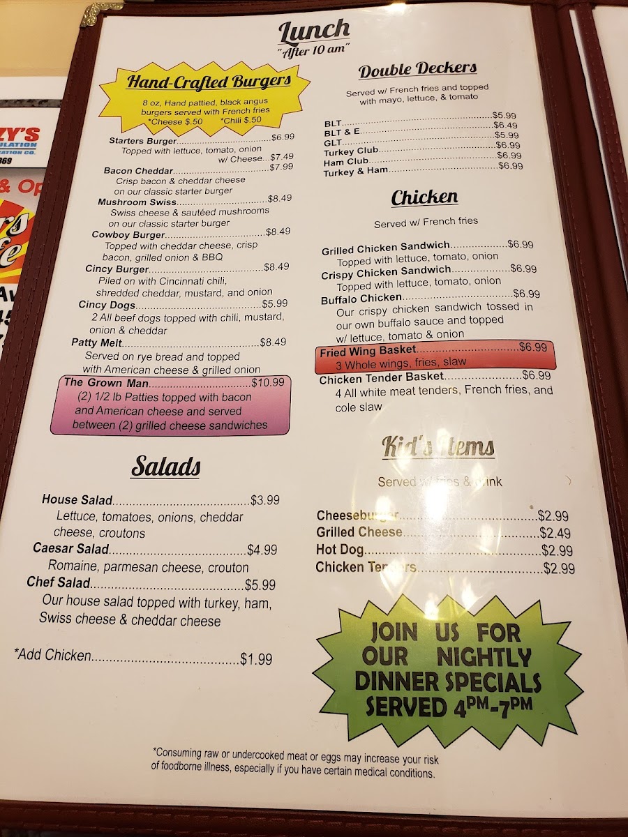 Welcome to Starters Cafe, a cozy haven located at 3412 Glenmore Ave in Cheviot, OH. This delightful café offers an enticing menu crafted for breakfast enthusiasts. Each dish is prepared with love, from the hearty Breakfast Starters Scrambles featuring a Homestyle Ham and Cheese Scramble to the distinctive Cincy Style Scramble steeped in local flair.